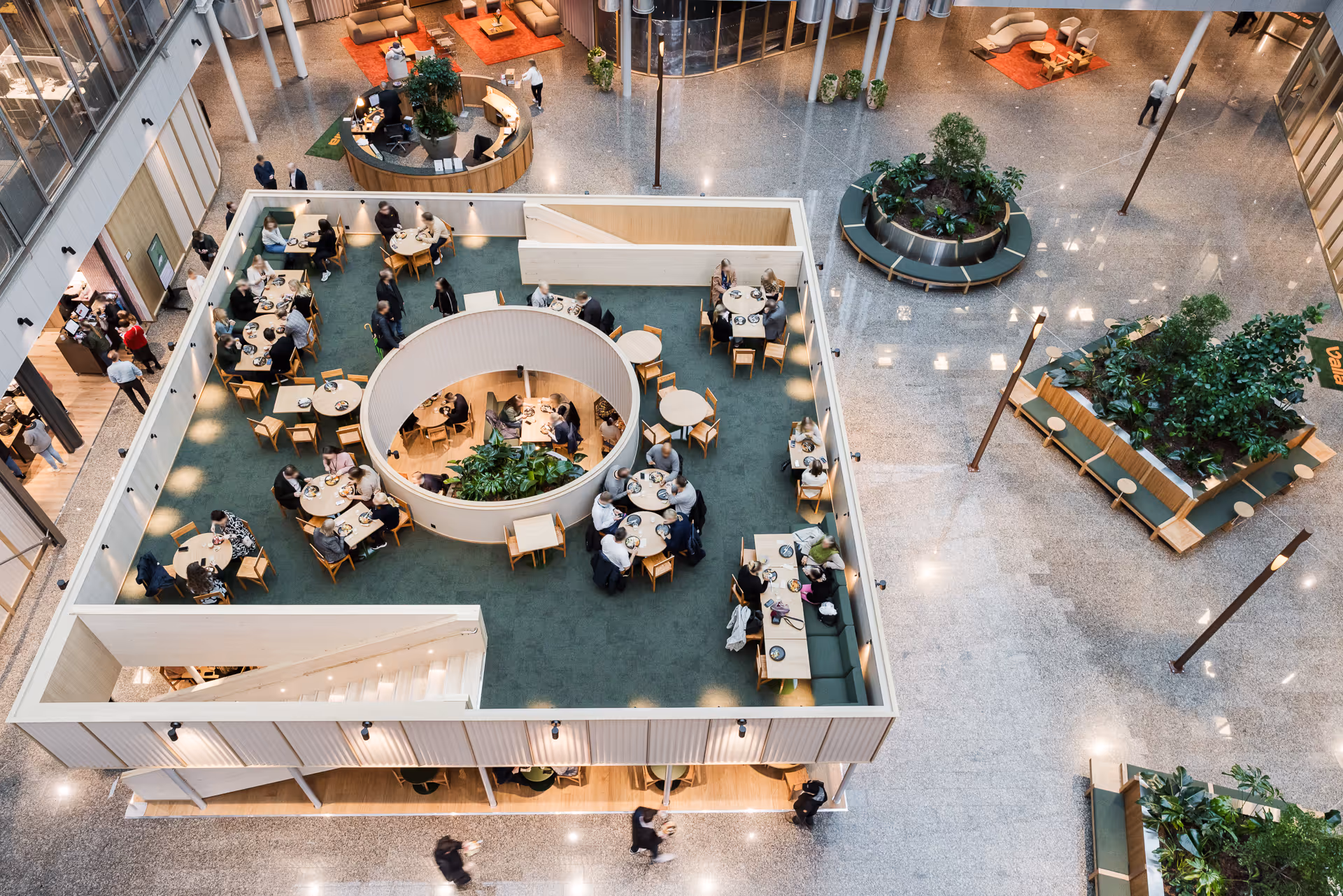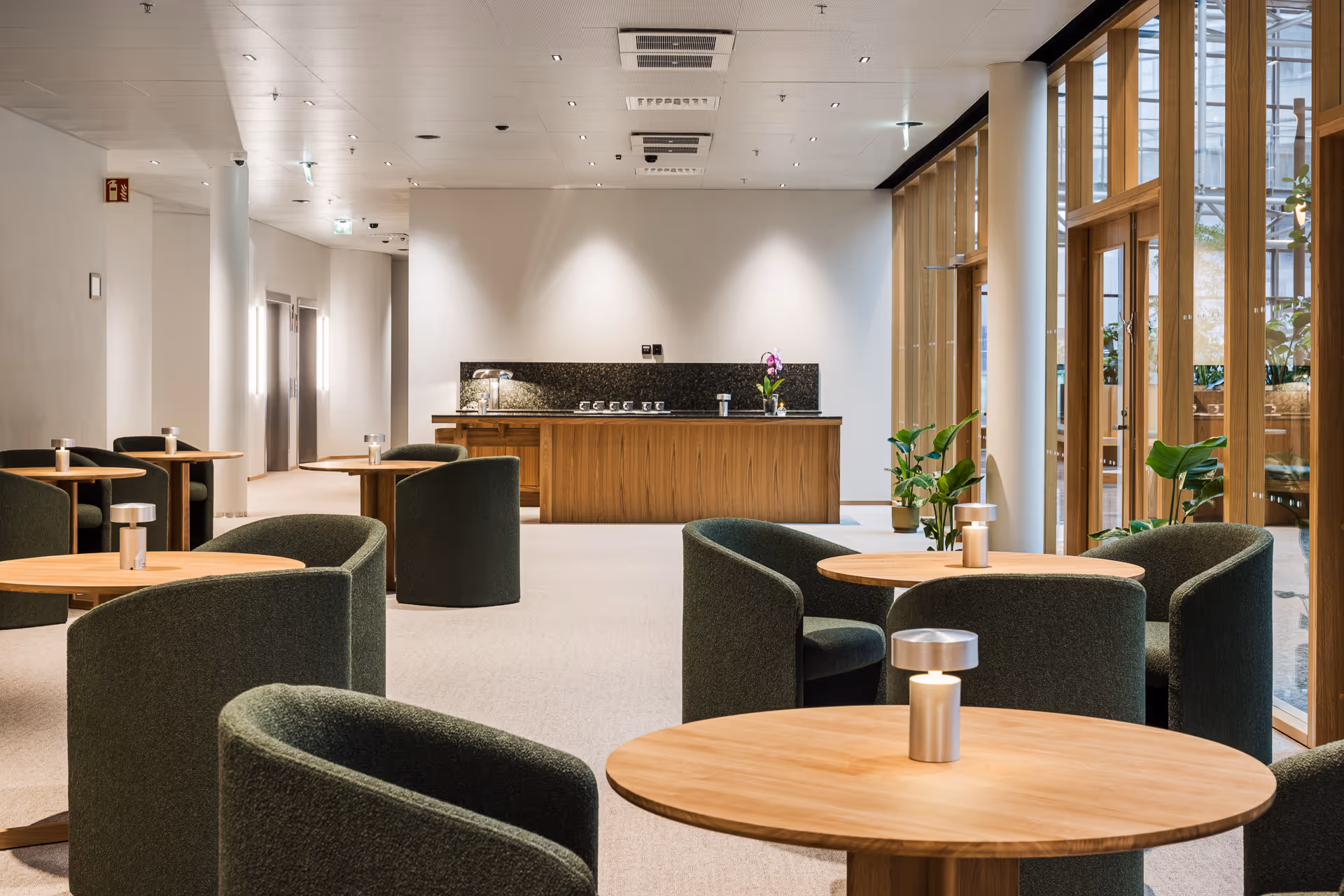 Atriumin yhteydessä olevat katutason kokoustilat ja 200-hengen auditorio sekä Tornin kokoustilat 15. kerroksessa.